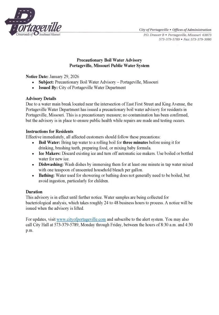 Guidance for Boil Water Advisory in Portageville