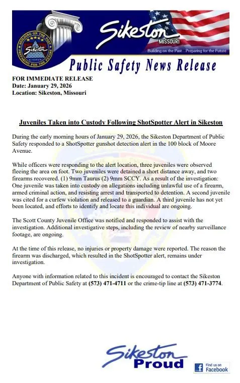 Two Sikeston Juveniles Detained Following ShotSpotter Alert