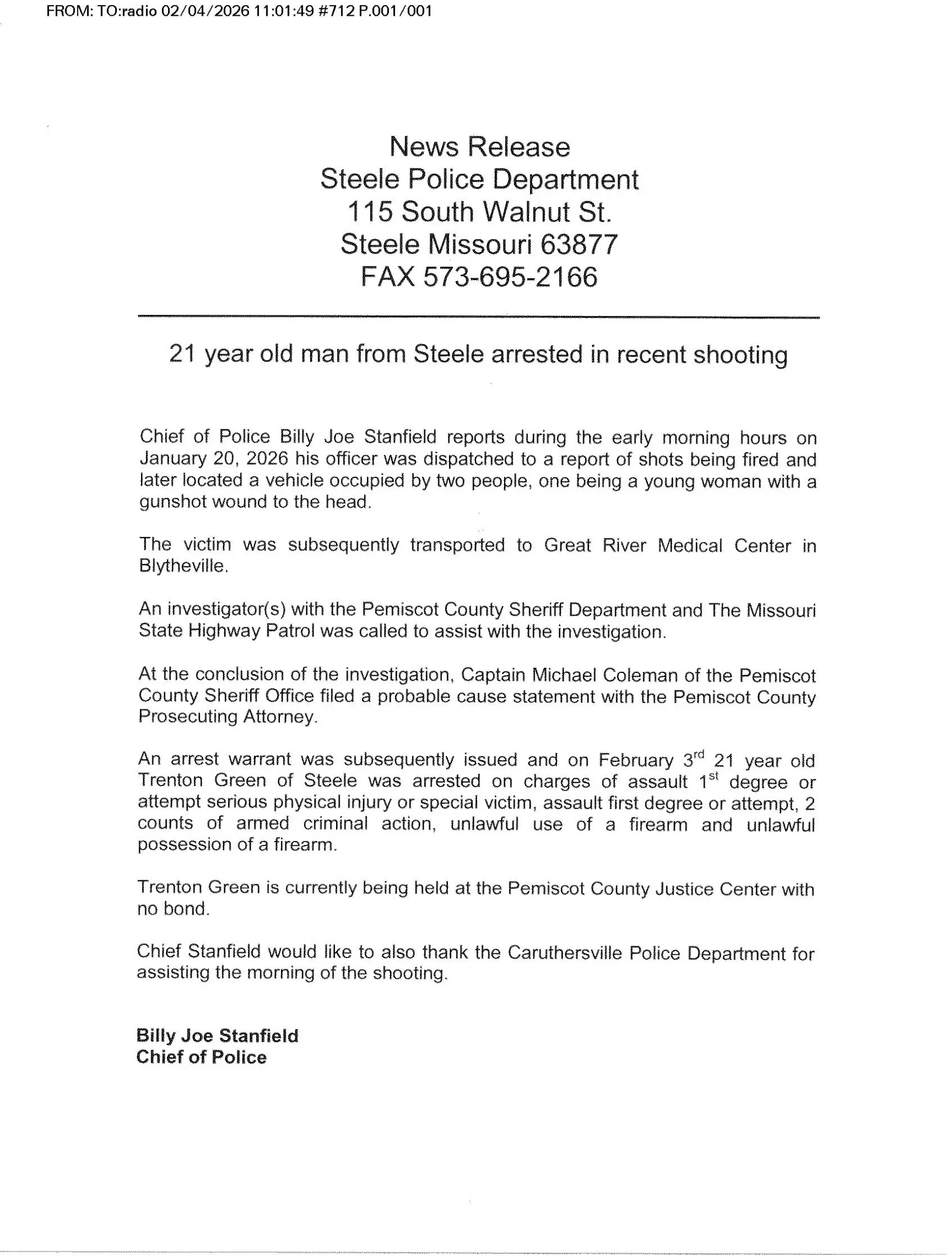 Steele Man Arrested for Recent Shooting